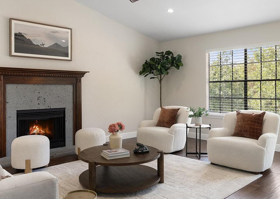 Wood-burning fireplaceFresh paintAbundance of natural lightLow-maintenance outdoor spacesThree bedroomsNew carpetQuiet street