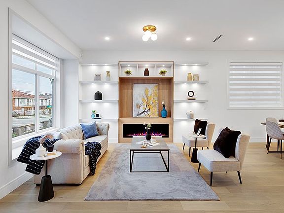 Brand New 5 Bed + 5 Bath Half Duplex in East Burnaby! This beautifully finished home offers over 2,500 sq ft of luxurious living with 10 ft ceilings on the main, engineered hardwood floors, and oversized windows for abundant natural light. The main floor boasts a gourmet kitchen with quartz counters, custom cabinetry, and premium appliances. Upstairs features 3 oversized bedrooms, including a spa-like primary ensuite. Enjoy a private deck with scenic mountain views. Basement offers flexibility: 2-bedroom suite or 1-bedroom suite plus flex room. Includes radiant heat, A/C, HRV, security system & detached garage. Steps to schools, parks & transit!