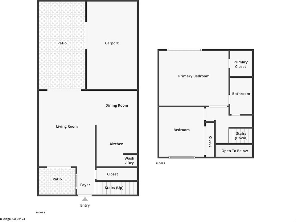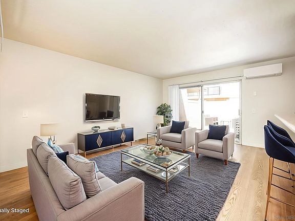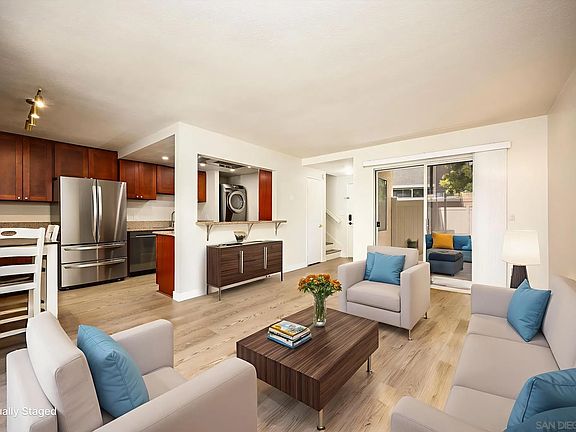 Welcome to your beautiful new home in the heart of Serra Mesa's sought-after Birdland neighborhood! This charming 2-bedroom, 1-bathroom townhome offers the perfect blend of comfort, style, and convenience. Nestled in a quiet community with easy access to major freeways, you'll love how centrally located you are—just minutes from Fashion Valley Mall, top-rated hospitals, shopping, and dining. From the moment you arrive, the lush greenery, mature trees, and well-maintained landscaping at the entrance set the tone for the serene living that awaits inside. Step through the front door into a spacious living room with an open layout that feels warm and welcoming. The home features not one, but two private patios, perfect for morning coffee or weekend BBQs. The rear patio even connects directly to your covered carport—just pull in and walk right into your home. Upstairs, you’ll find a large primary bedroom with a walk-in closet and a fully remodeled bathroom featuring beautiful tile work and an upgraded vanity. Modern mini-split A/C systems upstairs and downstairs ensure year-round comfort. As part of a well-kept community, you’ll also enjoy access to a sparkling pool—the perfect retreat on sunny San Diego days. Don’t just take our word for it—come see this gem in person and experience the perfect blend of peaceful living and city convenience!