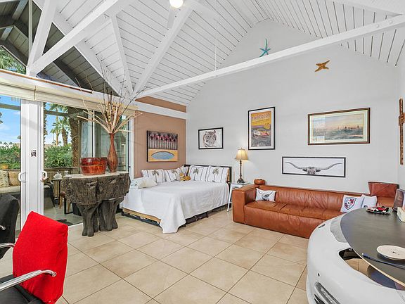 Beautiful Mountain Cove Condo! This second story condo offers vaulted ceilings with exposed beams and mountain views! Enjoy the open flow to your covered patio as additional living space with mountain views and palm trees. Overlooking one of the three pools. Full remodeled kitchen including new Samsung fridge and oven with additional features like air frying! New dishwasher, hot water heater, and interior laundry! Redone bathroom with stone counters and stylish shower with skylight. Tile floors and large windows with sliding doors to let in lots of light and fresh desert breeze. Great additional office area off of the kitchen for at home work. Mountain Cove located in Indian Wells and close to both shops and restaurants of La Quinta and popular El Paseo. Take advantage of the Indian Wells Resident Card with benefits including Discounted Golf at the Indian Wells Golf Resort ($35 May-Dec + $50 Jan-April), Complimentary Access to the Hyatt Regency Gym, 20% Hotel and Restaurant Discounts, and Free Tickets to the Indian Wells Tennis Gardens!! Low $264 monthly HOA includes 3 community pools, landscape, building maintenance, water, and guard gated security. Plus 7 Day Short Term Rentals!