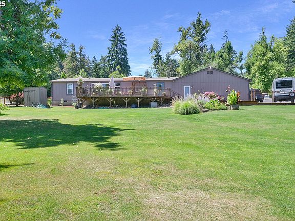 Discover this stunning modern manufactured home nestled on 2 acres of serene property. Enjoy a gorgeous garden with fruit trees, a spacious deck, and plenty of room to explore. Fresh exterior paint, new windows, a newer hot water tank, and a roof just five years young add peace of mind.The kitchen and bathroom were beautifully remodeled in 2022, featuring quartz and granite countertops, an eating bar, a pantry, and high-quality wood LVP flooring. Comfort is assured with a newer furnace and heat pump.The fully fenced property is perfect for outdoor living and convenience, offering RV parking, a 2-car garage, an equipment shed, and a 50-amp generator setup. The septic system has been thoughtfully updated with a new pump and a serviced tank in 2022.This home blends modern upgrades, functional living, and outdoor charm—truly a must-see!