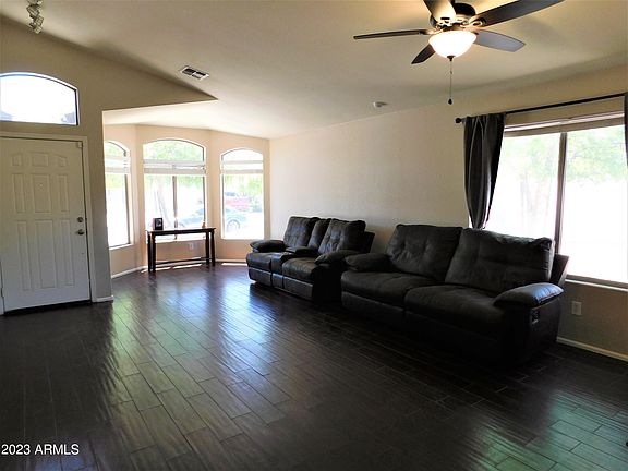 Please come enjoy this spacious 3 bedroom, 2 bath home. Luxury Vinyl wood grain planks in most of the home with carpet in bedrooms. Upon entry, you will see a large family room with room for a formal dining room! Your kitchen is extremely well laid out and proudly shows off granite counters and a custom tile backsplash! Kitchen island has seating along with room for a nice sized table and chairs! Owners suite is very large as is the walk in closet! Full bathroom with shower and soaking tub, dual sinks and a private door to the backyard! Two additional bedrooms, a second bathroom and indoor laundry room round out this must see house! Easy access to new Loop 202 and a TON of new shopping and services make this the location you will want to live in! Come by and check it out today!
