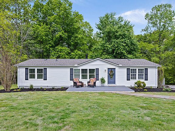 Renovated manufactured home on a permanent foundation on 5.48 gorgeous acres located in Williamson County! Featuring: new roof in 2022, new HVAC condenser 2021, newer cabinets, flooring, fixtures, countertops, toilets, dishwasher, carpet, ss appliances and refrigerator/ washer and dryer stays! Wood burning fireplace, walk in closets in every room, large utility room, large pantry. Your very own hiking trail down to a beautiful creek with a waterfall. Apple, peach, pear fruit trees line the front fenced yard! Oversized deck,16x20 storage shed, large chicken coop, separate large fenced area for equipment or farm animals. Oversized driveway with electric gate. This is a beautiful retreat under 15 minutes to Fairview shops and 22 minutes to Leipers Fork Village. Your very own oasis!