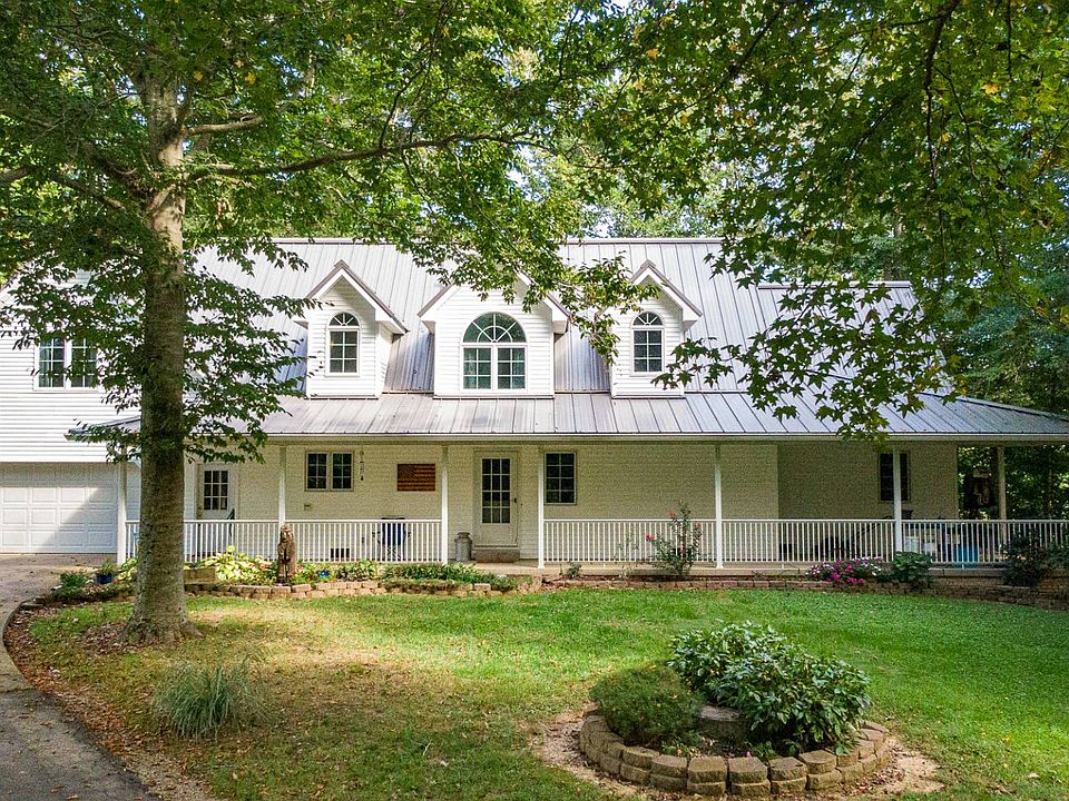 Don't let this one get away! Tucked away in a shroud of mature trees provides you privacy at the end of this blacktopped lane. This charming farmhouse-style home boasts 3,616 square feet of living space framed with a covered 200 foot wrap-around porch. And all the amenities you would want! This home sits on the bank of Deer Creek, which feeds into the Ohio River and offers water access for your boating, swimming and fishing activities. The expansive Teak Wood deck attaches to the covered rear patio giving you all the room for large gatherings, or for just the two of you watching your favorite game on the mounted TV in the outdoor family space. Fiber optic was just installed throughout the home. An outdoor half-bath completes the space. The interior of this home on the main floor is covered with beautiful hardwood floors and has an open concept with a large living room, including a gas fireplace, office space, dining area and kitchen with a large island. The black Samsung appliances (approximately 6 years old) stay with the home. The master bedroom includes an en-suite bathroom with his and hers lavatories and shower/tub. The laundry room (with its own laundry chute from upstairs) is located just off the kitchen where the new tankless water heater is installed. The upstairs loft overlooks the living room where two additional spacious bedrooms with large walk-in closets are located. There is a centrally located full bath off the hall and an additional half-bath in the large bedroom/bonus room over the garage. A two-car garage with walk-in closet the width of the garage will store your lawn tools and "then some". There is a newer metal roof (with a 50 yr. warranty) that was installed 4 years ago. Insulation foam keeps the home warm in the winter and comfortable in the summer. All of this sets on a 3.11 acre waterfront lot.