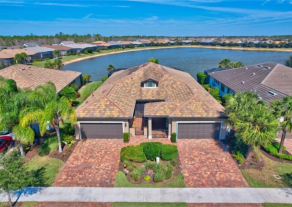 PRICED TO SELL!! This beautiful Cressida model villa in highly sought-after Winding Cypress is move-in-ready. Freshly painted inside and out. Roof and all pavers have been power washed and sealed This beautiful villa offers two bedrooms, two baths plus a den along with a two-car air-conditioned garage. The den can be easily converted into a third bedroom. Step onto your lanai with the largest pool and hot tub available in a villa. Couple that with a spectacular long lake view and you truly have a one-of-a-kind home. Winding Cypress offers resort-style living with a large amenity center, gym, exercise room, library, internet cafe, event room and restaurant. The resort-style pool has a lap lane and waterfall. Other amenities include pickleball, tennis, bocce, community garden and dog park. The community boardwalk allows you to walk deep into the preserve. Winding Cypress boasts 800 acres of untouched preserve surrounding our one-of-a-kind community.