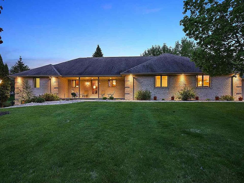 Stunning full brick 3BR/2.2BA ranch home with plenty of room to roam! This house is nestled on a spacious, partially wooded 16 acres that features a quaint pond, 40x48 outdoor building with electrical service, and TWO other 40x60 outdoor buildings with concrete floors for tons of storage space. Along with the beautiful landscaping around the home you'll find fruit trees, a large front porch, and an extra back patio too! Walk inside and enjoy a bright and spacious floor plan featuring gorgeous oak cabinets/built-ins in kitchen area, cozy sun room, TWO fireplaces, and 1st floor laundry!