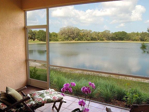 You will not believe the incredible attention to detail in this lakefront 3 bedroom 2 bath Robert Harris Saga Palm model home! Upgrades everywhere you look! The kitchen is delightful with Corian counters, maple cabinets, and a breakfast area where you can enjoy the peaceful view of the lake. Custom touches throughout the home include upgraded flooring, tray ceilings, a huge Master Suite with dual vanities and even a Roman Shower! The quiet community offers a beautiful pool and clubhouse for entertaining. Truly a must see. Seller agrees to pay for title.