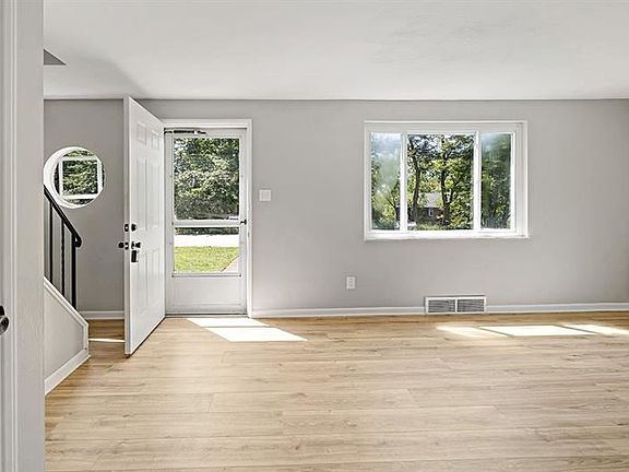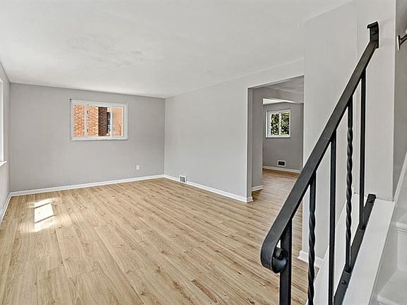 This attractive Cape Cod begs to have its delightful renovations seen. It features French Oak Luxury Flooring throughout, fresh paint, 4 decently sized bedrooms, a completely remodeled kitchen with quartz counter tops, stainless steel appliances, Crisp and Clean white cabinetry, and 1.5 baths both updated. A large basement with extra storage under the stairway. Walk-Out access to the covered back porch or through the 1 car garage with a huge driveway offering additional parking. Easy to maintain flat yards. Home Warranty Included!