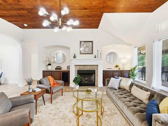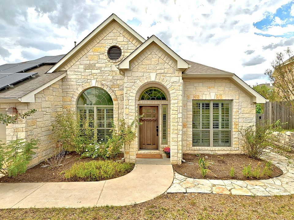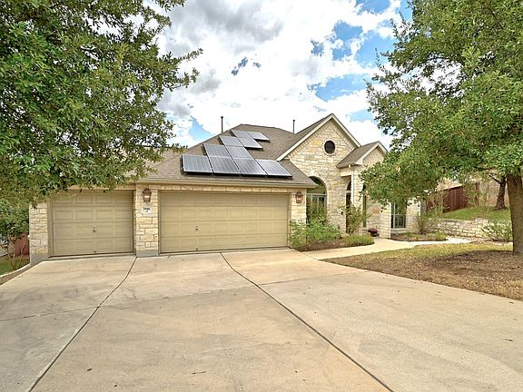 Welcome to your dream home nestled in the heart of the desirable Lantana neighborhood, located on a peaceful cul-de-sac street. This rare single-story floor plan features 3 bedrooms, 3 full bathrooms, a versatile office, a formal dining room, and a bonus room, making it perfect for adapting to your lifestyle needs. Soaring 20ft cathedral ceilings crowned with a skylight, and expansive granite countertops, making the centrally located kitchen an entertainer’s delight. Easy-care tile and hardwood floors throughout are complemented by high ceilings that enhance the airy feel, while special touches, including crown molding in the formal dining area and wood detail ceiling in the living room, add personality. Outdoor living comes naturally on the large covered patio, which features a kitchen/wet bar area (already equipped with electricity and natural gas connections), as well as tree-filtered views of the expansive private backyard with lovely rock river landscaping. This oversized .30-acre homesite features a rare side-by-side three-car garage and is conveniently located near vibrant restaurants, shops, and entertainment. With easy access to Bee Caves, Downtown Austin, and the airport, this home combines tranquility with modern convenience. Don’t miss the opportunity to make this your own oasis!