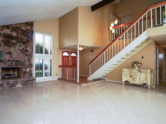 Spacious and charming 3 bedroom, 2.5 bathroom pool home with first floor bonus room (potential 4th bedroom) located in the beautiful community of Winnetka. Front entry leads in to the bright wide open living and dining great room area featuring a high vaulted ceiling, large windows providing great sunlight, tall plantation shutters, gorgeous tile flooring and a warming fireplace with floor to ceiling stone surround and granite hearth. The charming recently remodeled kitchen shines featuring recessed lighting, newer cabinetry, quartz counters, patterned tile backsplash, stainless steel fixtures, upgraded appliances, a center island with extended storage, stone tile flooring and newer copper plumbing. Down the hall is the powder room and a sizable bonus room with backyard access, and can easily be used as a private office or first floor 4th bedroom.Head up the stairway to the second floor landing with linen storage cabinets and wood flooring throughout. The extensive main bedroom features a vaulted ceiling with wood beams, retreat/nursery area, large dual closets, and an en-suite main bathroom with floor to ceiling tile, linen cabinet and walk-in shower with sitting bench and guide bar. Down the hall are the sizable secondary bedrooms with large closets and a full secondary bathroom. The inviting backyard is ready to entertain with a covered patio, gas BBQ area and heater, or privately unwind in the refreshing pool and spa featuring pebble tech finish, newer pump and a high fence surround providing privacy from neighbors.