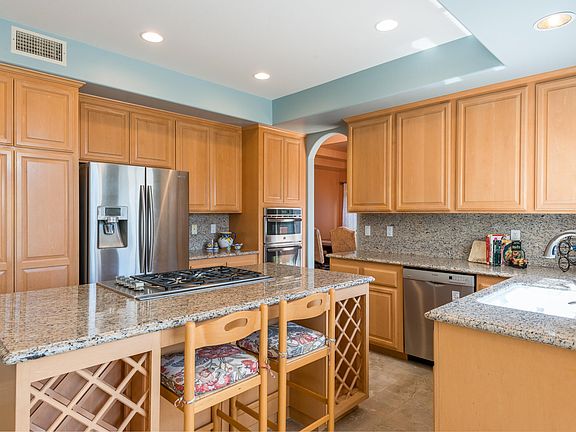 Beautiful, spacious, Mediterranean style two story home in excellent condition. Large gourmet kitchen with maple cabinetry, stainless steel appliances, plantation shutters, slate fireplace and Italian porcelain tile. Lovely formal dining room with hickory floors and Spanish feel. Spacious light filled living room with cathedral ceilings, sky lights and gorgeous stone fireplace. Kitchen and dining rooms open to a private and peaceful flagstone patio living area and a gravel walk way leading to a grassy sunny yard. Large master bedroom overlooking the neighborhood with views to the mountains, self-starting gas fireplace, walk-in closet and plantation shutters. Master bathroom with double sinks, separate shower and large whirlpool bath. Rarely available in prime location of sought after Winchester Commons neighborhood. Home backs to green belt with meandering walkways throughout the well maintained, private neighborhood leading to pool, spa and tennis courts. One mile to Ellwood Bluffs and beach as well as Haskell's (Bacara) Beach. A short drive to city and state beach parks, the university and business parks. Within a mile of two world renowned golf courses. Close to restaurants, shopping, movie theater and athletic fields.