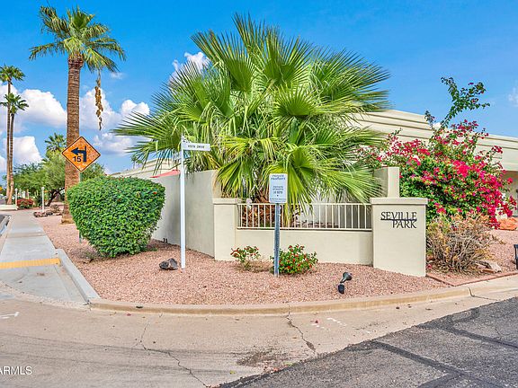 Beautiful Villa Monterey Home! This stunning 1 bedroom, 1.5 bath home offers a south-facing private patio with peaceful views of the greenbelt and community pool in this desirable 55+ community/Seville Park. Completely renovated, this lovely home showcases thoughtful, custom updates throughout including fresh interior paint, an open kitchen with all-new custom contemporary cabinetry, stainless steel appliances, and quartz countertops with a waterfall edge. The spacious great room layout features wood and tile flooring throughout, a new stacked washer/dryer, tankless water heater, and newer A/C. The roof has been recently recoated for added peace of mind. Step outside and take advantage of nearby walking and biking trails, or head just minutes away to Old Town Scottsdale's Old Town Scottsdale's shopping, dining, golf and parks with easy freeway access. A perfect mix of convenience, charm and peaceful living in this welcoming community.