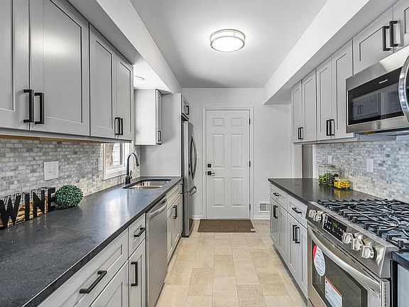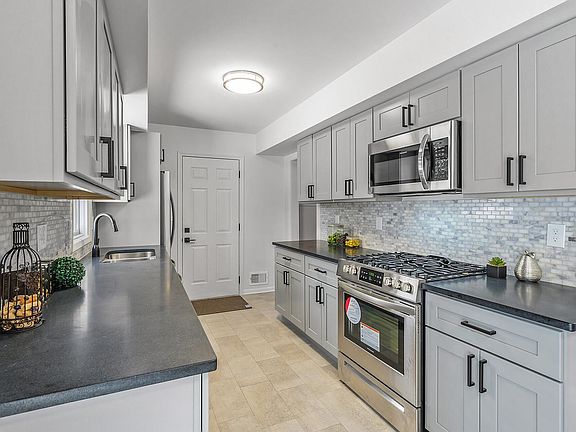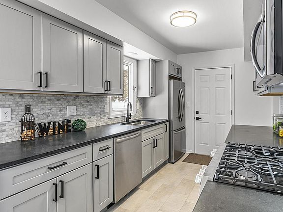 Professionally and completely remodeled and ready to move into! 5BR, 2BA, with huge fenced in backyard. The kitchen features honed granite countertops, beautiful cabinets with soft close drawers and doors, upgraded stainless appliances and tile backsplash. Beautifully refinished hardwood floors on the main level. Finished lower level: spacious family room, bedroom and office and separate laundry. Additional features: Neutral decor, completely remodeled kitchen and bathrooms, freshly painted throughout, new plumbing, and electrical fixtures, flooring and exterior doors. Large lot with fenced in backyard and shed. Just minutes away from shopping, restaurants & freeway access. Just move in and unpack your boxes!