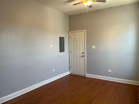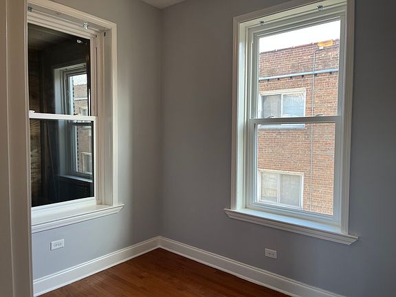 The unit features recently sanded and stained hardwood flooring, new kitchen, new bath, fresh paint and recessed lighting and a private balcony. Access to three bus lines. Metra stop less than 3 blocks away. No smoking. No pets