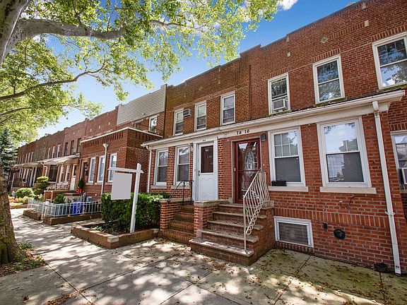 Spacious 20 foot wide, 1 family house on a tree lined street featuring 3 bedrooms, a large living room and spacious formal dining room for entertaining. Public school 119 right down the street! Large 2 car garage. House is very good condition, full finished basement!