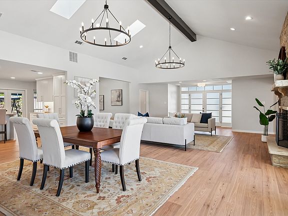 Situated on a stunning corner lot shaded by mature trees, 7818 Kilbride Lane stands as a showpiece of design, craftsmanship, & comfort in the highly sought after Highlands North neighborhood. This home has been completely reimagined from the ground up, offering a renovation of the highest caliber where no detail was overlooked. Step inside to an open, sunlit floor plan that flows effortlessly through expansive living spaces. The grand room welcomes you with soaring ceilings, new Pergo LVP floors, & natural light streaming through energy-efficient windows. The kitchen is a true statement piece that is fully custom & crafted for both beauty & function complete with Taj Mahal quartzite counters, custom-built cabinetry & pantry system, a vast island, and a top-tier Bosch appliance package. A convenient utility room can double as a butler’s pantry & connects to the rare three-car garage with epoxy flooring. In the primary suite, luxury meets tranquility with private views of the backyard & a spa-like ensuite bath featuring a massive walk-in shower, double vanity, & a soon-to-be-installed custom closet system. Three additional bedrooms, an office, & a cozy sitting room provide flexibility for both work & relaxation. Toward the back of the home, the family room offers the perfect setting for movie or game nights. Looking for more? Step outside to a backyard retreat made for entertaining, complete with a covered patio, resurfaced pool with updated decking, pet-friendly turfed yard, and a custom pergola with a fire pit for evenings under the stars. A separate turfed side yard just off the kitchen adds another outdoor oasis & is ideal for grilling or quiet mornings. Peace of mind comes easy with PVC plumbing throughout, a new electrical panel, and a 2023 roof. Zoned to premier Richardson schools including Bowie Elementary, Parkhill Junior High, & JJ Pearce High, this turnkey home represents the best blend of modern elegance, comfort, & location.