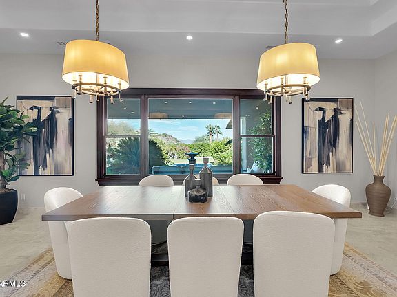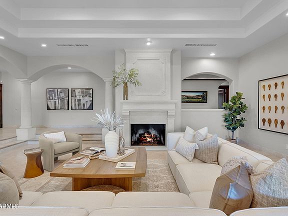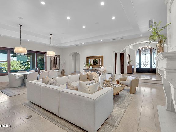 A rare & secluded sanctuary awaits at this unparalleled compound representing the ultimate retreat in the heart of Paradise Valley. This incomparable estate captures the essence of Santa Barbara grandeur. The privately gated, elevated & mostly flat 2 acre lot gives 270 degrees of captivating mountain/city light views, including fiery views of Mummy Mtn. Masterfully designed with a commercial grade kitchen, butler's pantry, 861 bottle wine cellar, media room, gym, 3 fireplaces, temp-controlled 3-car garage, 4-car RV garage that can accommodate lifts or be used in it's current indoor golf simulator set up. Nature & luxury converge in perfect harmony outdoors that includes a 9' diving pool, spa, 5 hole putting green, pickleball/basketball sport court. Your legacy estate awaits.