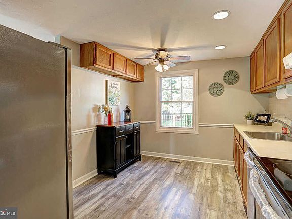 Beautiful split level home offers new stainless steel appliances, living room with natural light, dining room with slider to deck with new floor boards, new flooring and fresh paint on main level, upper level has 3 bedrooms with new carpet, refreshed full bath, closet and attic access from hallway, lower level features family room with wood burning fireplace, recessed lights and laminate flooring, office with carpet, half bath, laundry room/storage area with walk out to large backyard with shed and swingset. This is a MUST SEE!