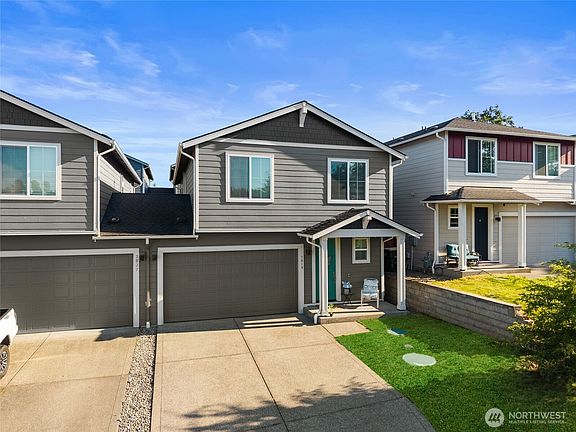Discover Cantergrove at Long Lake—enjoy private lake access, a dock, park, trails, and a new elementary school nearby! This nearly new home offers an open-concept layout with a modern kitchen, stainless steel appliances, gas range, and quartz countertops—ideal for entertaining. Upstairs, a spacious loft bonus room separates the primary suite—featuring an ensuite bath, double vanity, and walk-in closet—from two additional bedrooms and a utility room. Just 3 minutes to shopping and a short commute to JBLM, all on a quiet dead-end road.