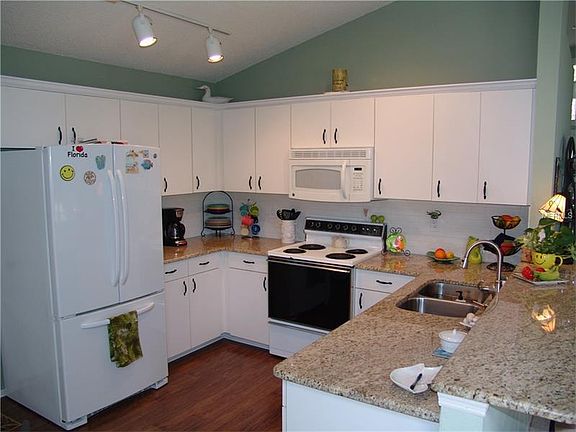 This beautiful spacious updated home is located on an oversized lot on a cul-de-sac backing up to a conservation area which affords privacy and a touch of nature. Tastefully integrated with a mixture of wood, tile and carpet flooring enhances its beauty and comfort and volume ceilings. . There is plenty of room for guests and visitors in the masterfully planned split bedroom design with separate bedroom /den areas. The kitchen has been tastefully upgraded with wood flooring adding to the warm atmosphere plus new and newer appliances make cooking a pleasure for the potential Chef. The potential Chef has the option of either connecting to gas with an appropriate stove or using the current newly purchased glass top stove. Designer granite counter tops add to the kitchen's beauty together with the decorative molding at the top of the cupboards. Light and bright is what you find in this open floor plan home. There are two specially placed screened lanais at the rear of the home and on the South side which allows one to enjoy the sunshine in the morning, and all during the day. The roof was replaced in May of 2012 and a few years later, in August of 2013, the air conditioning and air handler were replaced. The home has many decorative plant shelves plus places for special moment pictures and those cherished items. The master bedroom/bathroom have been remodeled. The master bathroom has a walk-in step-up tub, new cabinets, marble counter top, fresh paint, and a shower enclosure with new tile work.