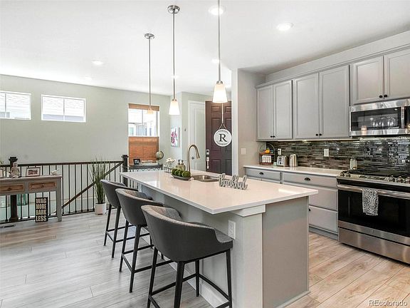 Gorgeous turn key ready patio home/duplex located in desirable Sterling Ranch. This was a model home with all of the upgrades! Enjoy the sunny open floor with high end finishes in this 4 bedroom, 3 bath, 2 car garage home. The kitchen includes stainless steel appliances & quartz counters. The main floor living room, kitchen, laundry and mudroom has luxury vinyl flooring. The home is fully fenced and beautifully landscaped in both the front and back yard. Enjoy summer evenings sitting on the back patio and watching the amazing sunsets. The home truly offers main floor living with the primary master suite, home office (2nd bedroom) & laundry room all on the main level.  The lower level was recently finished to include an amazing lower level family/recreation room, bar area, 2 conforming bedrooms and a full bathroom. Pride of ownership throughout and will not disappoint. The solar system is an added bonus! This community offers many amenities to include a fabulous clubhouse, an amazing pool, and many scheduled calendar social events. HOA dues are already included in the property taxes. Your search is over, Welcome Home!