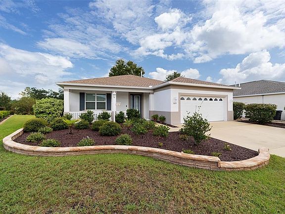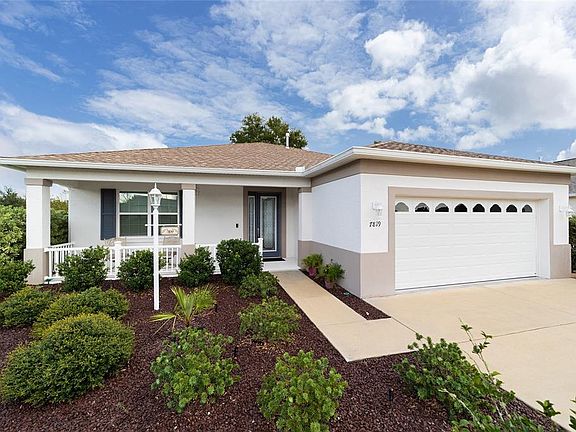 Welcome to this beautifully appointed 3-bedroom, 2-bath home offering 2,118 sq ft of living space in the desirable Indigo East neighborhood of On Top of the World, a premier 55+ community. Set on a .21-acre privacy lot, this inviting residence features an open-concept layout with luxury vinyl plank flooring throughout the main living areas, a stylish tray ceiling, and a built-in electric fireplace that creates a warm focal point. The upgraded kitchen boasts a gas range, ample cabinetry, and modern finishes—perfect for the home chef. Enjoy the outdoors from the great front porch accented by attractive hardscaping or relax in the screened lanai overlooking a backyard with large shade trees and an additional patio pad—ideal for entertaining or quiet mornings. Energy efficiency shines with owned solar panels. Residents enjoy access to outstanding amenities, including two swimming pools, walking trails, a dog park, and a fitness room. Golf cart access makes it easy to visit Circle Square Commons and nearby shopping, while medical facilities are just a short drive away. With its spacious floor plan, thoughtful upgrades, and vibrant lifestyle, this home is ready for you to start your next chapter.