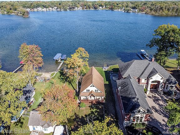 Gorgeous lakefront home on all-sports Commerce Lake. 52 feet of prime lake frontage with seawall. Spacious second floor loft with incredible views. Vaulted ceilings with cedar beams throughout great room. Newly painted interior throughout entire home. Primary bedroom on main level with walk-in closet featuring full bath with jacuzzi tub and separate walk-in shower. Beautiful stone gas fireplace. Whole house generator. Newer furnace (2022). Two car detached garage includes extra living/storage space, remote controls and oil change pit. Sliding door leads out to large freshly painted deck. Lawn sprinkler system. Large crawlspace is dry and clean to provide tons of storage space. Award winning Walled Lake Schools. Includes boat dock, refrigerator, stove, microwave, dishwasher, disposal, washer and dryer. Lakefront living is waiting for you! Don't miss it!