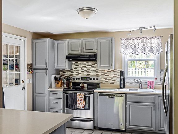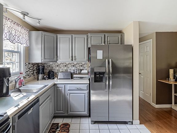 Lovely cape style home with a contemporary flare offering trendy grey kitchen cabinets with young stainless steel appliances plus island that makes a great breakfast bar or informal dining open to dining room finished with hardwood floors .1st floor primary bedroom option abutting full bath . Living room features cathedral ceiling, pellet stove, hardwood floors ,skylights and bay window flooding the room with natural light …open staircase leading to the 2nd floor with balcony where you will find (2) spacious bedrooms one with new plank style flooring and 2nd full bath. Lower level is fully finished with a continued open concept offering up to (3) additional rooms …perhaps an office,family room, game room, or study . Options are always a plus. 2 car attached garage , young roof & young propane heating systems are bonus features of this property. Outside space offers fenced area of the yard , mature trees ,and storage shed .Easy access to town amenities , local restaurants ,shopping
