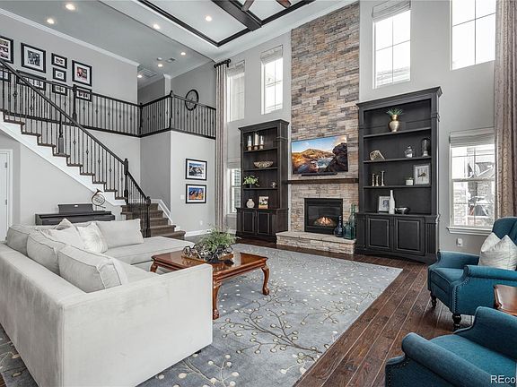 Situated on a quiet cut-de-sac backing and siding to open space- This TOLL BROTHERS sought after Orion model will WOW you. Just over 7,000 finished square feet. A dramatic, 2 story entry with spiral staircase welcomes you- Loaded with tons of custom features that include, custom millwork and ceiling beams, beautiful built-ins and designer window treatments throughout. Flooded with natural light, the elegant 2-story great room is open to the white kitchen with large island- perfect for entertaining. The main includes a private office with custom built in's, dining room that opens to back patio, and a private guest room with en-suite bathroom. On the upper level is the spacious primary bedroom which boasts a retreat area, dedicated closet for purses and shoes, private balcony, plus lovely primary bath with heated floors and huge walk-in custom California closet. The 2 additional upper level secondary bedrooms offer ensuite baths and walk-in closets. The custom lower level has 12 ft ceilings, large family room with wet bar, media room, work-out area, and two guest suites. You will love the PRIVATE back yard with southern exposure, open space behind, covered patio plus hot tub area to enjoy crisp Colorado nights. Love the lifestyle of beautiful BackCountry with resort style pools, work-out facility, amphitheater, parks, ponds, trails and SO much more.