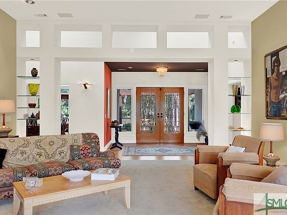 Discover the epitome of privacy & luxury at 782 Buckland Hall Rd, nestled on a secluded 2.35-ac lot with private deep-water access in the exclusive Buckland Hall Plantation of Richmond Hill. This gated community, known for its exclusivity, comprises of 28 custom-built homes, with just 11 offering direct access to the Belfast River. This 3,220sf contemporary ranch, once the private retreat of rock legend Greg Allman of the Allman Brothers, features 4 beds, 2 full baths, 2 half baths, & a 2.5-car garage. The property boasts a swimming pool & a deep-water dock with a floating dock. The home emphasizes natural light, with skylights & expansive glass walls, offering stunning views. A large deck & screened porch further enhance the outdoor living experience. Recent renovations include new wood floors, high-end carpet, new walkway to the updated main & floating docks, new HVAC, updated kitchen cabinets, & new paint throughout. This property is a rare find without the need for flood insurance!