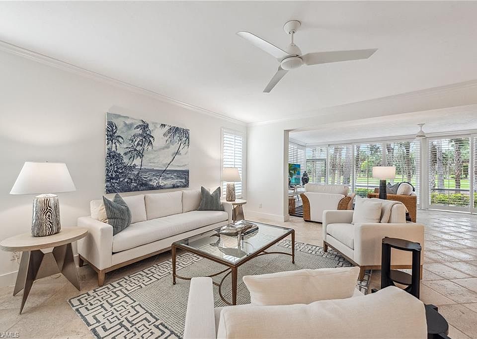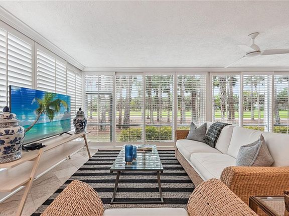 Expansive golf course views await in this completely reimagined end-unit condominium, offering three spacious bedrooms, three baths and a one-car garage! With its glass-enclosed lanai, this luxurious residence is ideal for year-round living, showcasing incredible square footage rivaling most homes. This unit also features many newly completed designer upgrades, some of which include a new kitchen, all-new luxury appointed baths, travertine flooring, plantation shutters, and a designer furniture and accessory package. The spacious owner’s suite offers a spa-inspired bath and large walk-in closet, while both guest bedrooms are privately situated and luxuriously appointed, each offering access to en-suite baths. This beautiful residence is ready for you to enjoy the 2024 season. Eagle Creek Golf and Country Club is a lush and intimate enclave set halfway between Naples and Marco Island, offering dining, golf, tennis, fitness and more. A social membership is required, or buyers can take advantage of the club's social golf program, which offers instant golf access to those who join the golf membership waitlist.