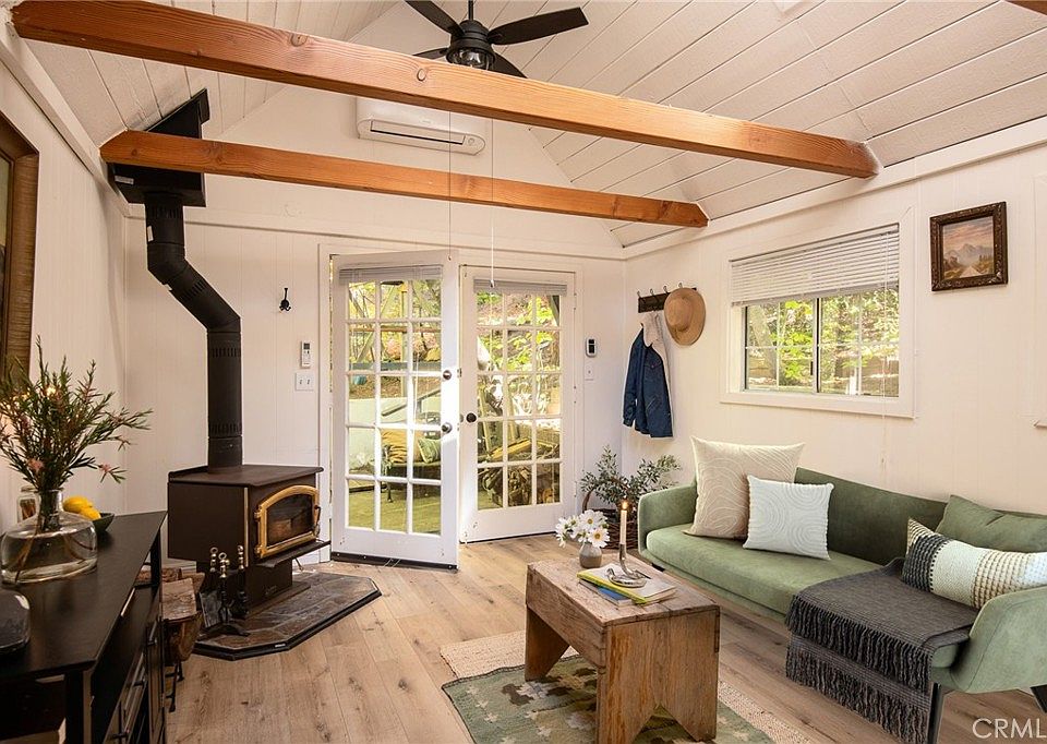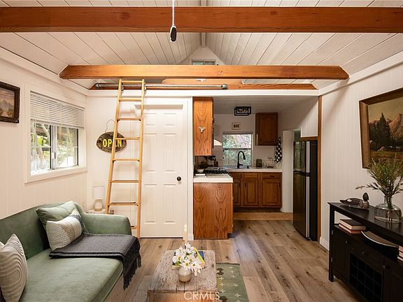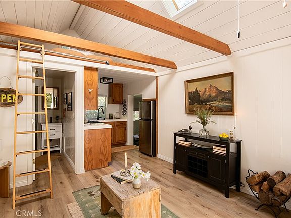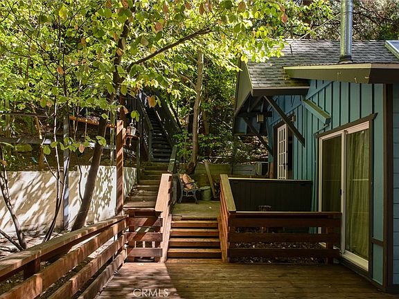 Welcome to the perfect little cottage tucked away in its own private forested haven. This home offers a rare sense of peace and seclusion, situated on a large, usable lot surrounded by majestic dogwoods, cedar, and white fir trees, this home offers serene mountain living at its finest. Step outside and discover what truly sets this property apart: the expansive wraparound deck. Nestled under the canopy of mature mountain trees, this outdoor space feels like your own private treehouse — A flat area—currently used for a swing set—provides a versatile space ideal for additional outdoor seating, a firepit lounge, or garden. Access the property via your own private two-car carport located on Lake Dr., leading you down into this enchanting woodland retreat. Step through the French double doors into a warm and inviting living room, featuring vaulted ceilings with exposed beams, skylights, and a cozy wood-burning stove. The upgraded kitchen flows seamlessly into the living area, perfect for entertaining. Just a few steps down, you’ll find a charming dining room with its own set of French doors opening to the deck, creating a beautiful indoor-outdoor living experience. The private bedroom is cozy and tucked away, complete with sliding glass doors for direct access to the deck. Upstairs, a carpeted loft offers an additional sleeping space—ideal for guests or a quiet reading nook. Ideally located in the Arrowhead Villas community, this home is just a short distance to Lake Arrowhead and Skyforest, home to local favorites like LouEddie’s Pizza, Skypark at Santa’s Village, and a collection of boutique shops. Come see for yourself!