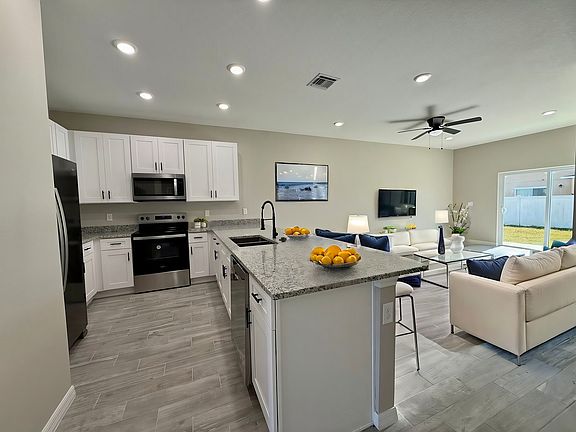 Get ready to be impressed the moment you step into this beautifully built 3-bedroom, 2-bath home on the desirable Polk County side of Poinciana! Designed for both style and comfort, this home features elegant wood-look ceramic tile flooring, soft-close wood cabinets, and a spacious open kitchen complete with upgraded cabinets, stainless steel appliances, and ample counter spaceincluding a large breakfast bar perfect for entertaining family and friends.