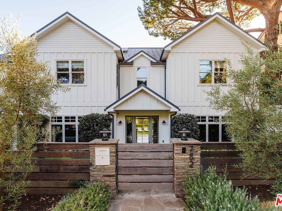 Welcome to one of Rustic Canyon's most beautiful homes to grace the market in recent years. This modern farmhouse blends artisanal details, top fixtures/finishes, voluminous rooms, and an open concept/indoor-outdoor layout to achieve exalted and unparalleled design. Guests are welcomed by double-height ceilings and wide-plank white oak floors leading to the heart of the home: a large open concept living room that pours out to the private backyard through large Fleetwood sliding doors - all underneath gorgeous wood-beamed ceilings. Main level highlights include a top-of-the-line kitchen with island, Sub-Zero and Wolf appliances, a large walk-in pantry, a butler' pantry with wine fridge leading to a gorgeous formal dining room, an office, and mud room with secondary laundry. Four bedrooms grace the upstairs featuring the large primary suite with two walk-in closets and large bathroom with oversized steam shower, separate tub, and sophisticated heated stone floors. Down the hall past the laundry room is a den through a secret bookshelf door, perfect for entertaining friends and little ones, which also leads down to the main level with a 2nd staircase. The lower level features a gym and a large state-of-the-art media room with bar, screen/projector, and a secret passageway to the utility rooms and a rear stairwell to the backyard. The backyard features a built-in BBQ, al fresco dining, a mature oak tree, a large spa with waterfall, and a firepit - all privately hedged with views out to the canyon. The home is completed by a two-car garage with EV charging. With a southeastern exposure and set in a prime part of the canyon, the property enjoys rare bountiful sunlight and close proximity to Rustic Canyon Park, Canyon School and The Palisades Village. Built in 2012 by Core Development Group, the residence has been further updated since. This is a rare offering not to be missed.