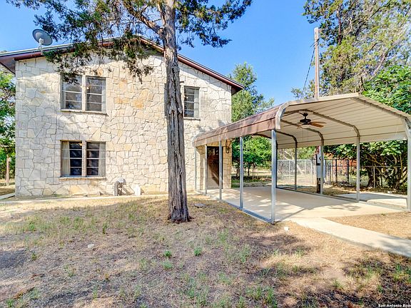 Privately nestled on over 9 acres of pristine hill country land is this well maintained hill country rock 2 story home, over 2260 sq. ft. living area! Inside you will find 4 bedrooms & 2 baths(both bathrooms feature custom tile walk-in showers), a big rock wood burning fireplace, great kitchen with a cozy breakfast nook, pantry, formal dining room and a large laundry room w/ whole house water softener. Outside you will find 2 covered patios, fenced yard & separate fenced dog kennel and many great trees; elms, oaks, maples, figs, mountain laurel, crape myrtles and more. The entire 9.998 acres is fenced with electric gate entrance and is covered in trees lending great privacy to the property. Additional Improvements on the property: a great fenced garden ready to be cultivated, a 28X14 detached garage, huge carport 40X25 and a large 16X40 RV barn with electric, water and septic drop. Property has paved road frontage and is located approximately 45 minutes from the San Antonio International Airport and is a commutable distance to Kerrville, Boerne and Bandera for great small town living!