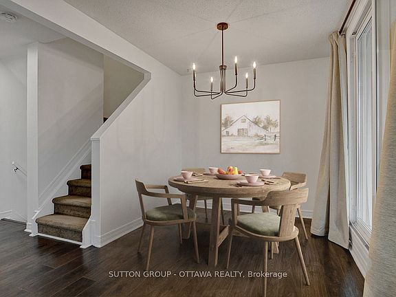 Upgraded 3 BEDROOM UPPER END UNIT in heart of Orleans! This freshly painted 3 bed, 2 bath home is sure to please! The main level features modern laminate flooring, upgraded light fixtures and an open concept living & dining area, perfect for entertaining. The dining room provides access to the spacious balcony with modern tiles and removable screens (2021), making the space both beautiful and comfortable. The kitchen boasts new marble-look laminate countertops & subway tile backsplash (2025), extended pantry (2020), and stainless steel appliances. A great sized bedroom is located off the main level living space which can also be used as a kids play room, home office, exercise space or whatever your heart desires! The main level also offers both a powder room and coat closet, conveniently located at the top of the entry stairs. The second level boats brand new luxury vinyl flooring and trim (2025). The large primary bedroom easily fits a king-sized bed with enough room for additional furniture as well! This bedroom also has a huge walk-in closet! A good-sized secondary bedroom, walk-in laundry room with plenty of shelving, and full bath complete this level. The extremely reasonable condo fees include water as well as an outdoor pool for you to cool off in the summer + playground for the kids! This property is situated close to everything you could possibly need: WALK TO shops (Metro, Shoppers Dollarama, LCBO, etc.!), the upcoming LRT station opening soon, multiple schools, dining & more! Amazing bike trails and parks nearby! 1 Parking Space & 2 Portable AC Units (2025) included. This one is not to be missed; Book a showing today! Note: some photos are virtually staged. Visit link for more photos!