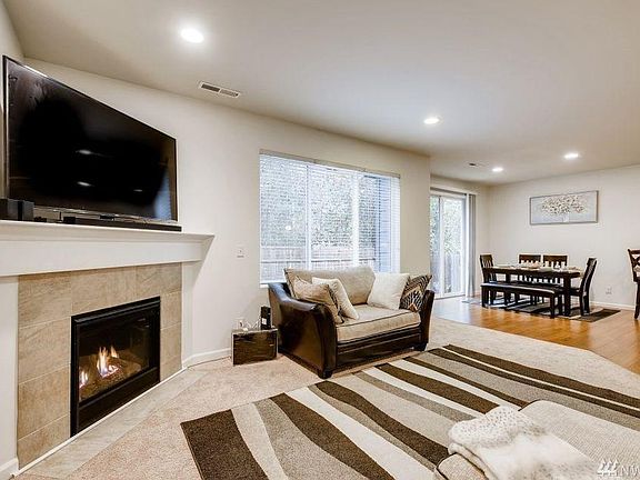 Dining area easily seats up to six. Gas fireplace graces the living area.