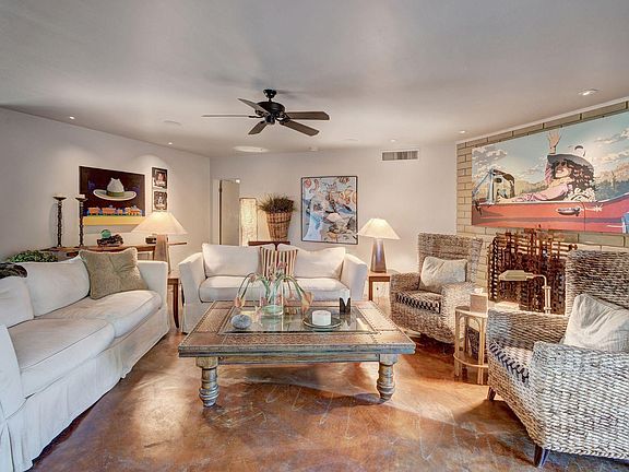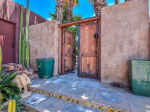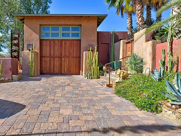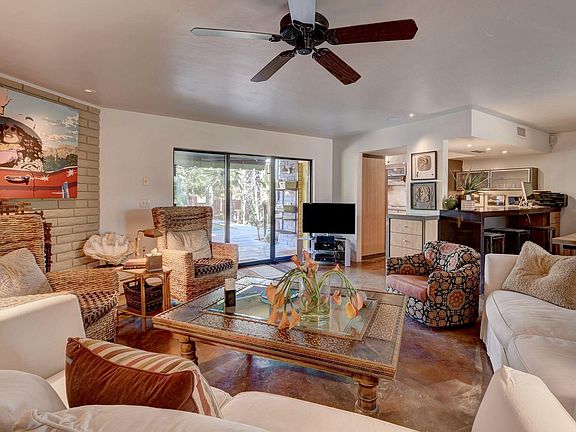 Cool, eclectic home with incredible energy and flow! 3BR/3BA in 3000+ SQ feet, 50+ foot RV garage, BRAND NEW roof with 5 year warranty, easy to maintain concrete floors, remodeled kitchen and private tropical courtyard with refreshing pool! Enjoy this dual Master layout with mountain views from your private back patio. Cozy up to the fireplace in your living room on those chilly Arizona nights or enjoy your coffee in your courtyard on those relaxing mornings. Come live a Carefree lifestyle! Short walk or ride to restaurants, shopping and resorts and community pool.