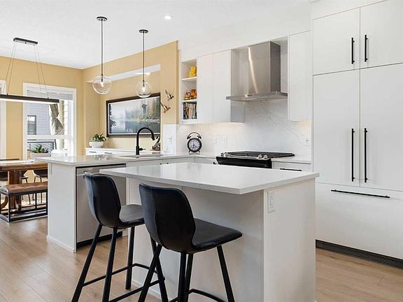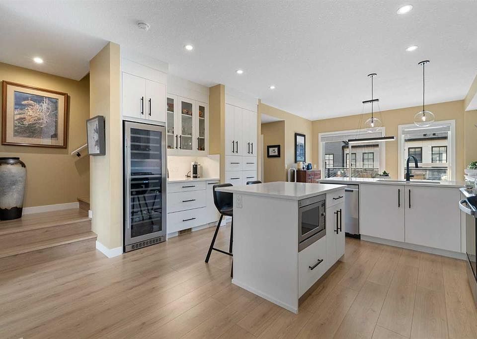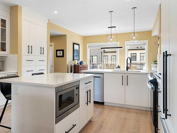 ***$30,000 Price Reduction*** -- Executive Townhome with Rare Upgrades & Unbeatable Location & Panoramic Mountain Views -- Welcome to a home that offers more than just beautiful finishes—it’s designed to make everyday living easier and more enjoyable for you and your guests. Step inside to an open main floor where the living, kitchen, and dining areas flow seamlessly—perfect for entertaining or simply relaxing at the end of the day. The chef’s kitchen is a true highlight, featuring both a peninsula and an island for extra prep and seating, a wall of custom cabinetry for organized storage, and a quartz coffee bar with pantry —everything you need at your fingertips. Hosting is effortless with the dining room’s additional custom cabinetry and expansive quartz serving area. A stylish powder room and a sunny balcony with a natural gas hook-up extend your living space, all framed by 9-foot ceilings that add light and openness. Upstairs, you’ll enjoy the privacy of two spacious primary suites, each with its own spa-like ensuite and custom walk-in closet. The main retreat feels like a boutique hotel, with soaring vaulted ceilings, oversized windows, and a seamless ensuite-to-closet design that makes mornings effortless. The second suite doubles as a smart home office or guest room/additional bedroom. Everyday conveniences are built right in, including second-floor laundry with energy-efficient LG washer/dryer and added shelving for storage. Car lovers and hobbyists will appreciate the rare heated triple tandem garage with water spout and durable polyaspartic flooring (superior to epoxy)—a space as functional as it is impressive. Comfort upgrades like ultra-quiet central A/C and a central vac rough-in mean you’ll move into a home ready for both convenience and long-term value. All this in one of Calgary’s most desirable west-side locations—just minutes from Aspen Landing Shopping Centre, the 69th Street C-Train, and top-rated schools. Don’t miss the opportunity to own a home that truly checks every box. Call your favourite Realtor today before it’s gone!
