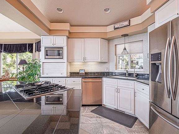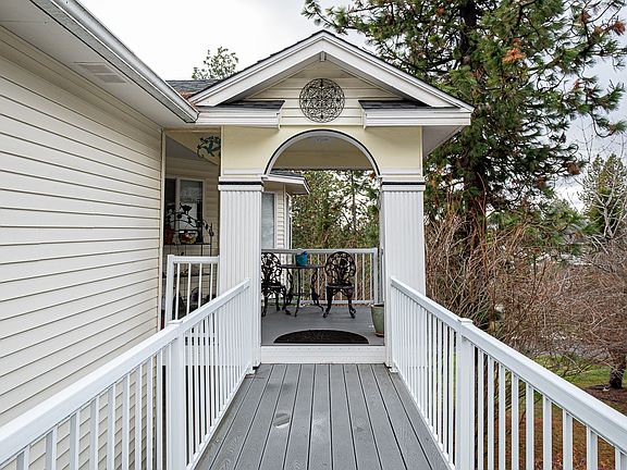 WEST VALLEY/NORTHWOOD WITH A VIEW! This wonderful 3 BR/3 BA Gordon Finch Daylight Basement Rancher w/ 2,564 sqft of living space in the private gated Woodland Ridge Community is waiting for YOU! After cooking a gourmet dinner in the well-appointed kitchen with granite counters, gas stove, stainless appliances and beautiful white cabinets--eat out on the elevated deck overlooking the Spokane Valley. Then take a dip in the hot tub. Lots of sunlight. Laminate floors. Elegant Master BR/BA. Call now to see!