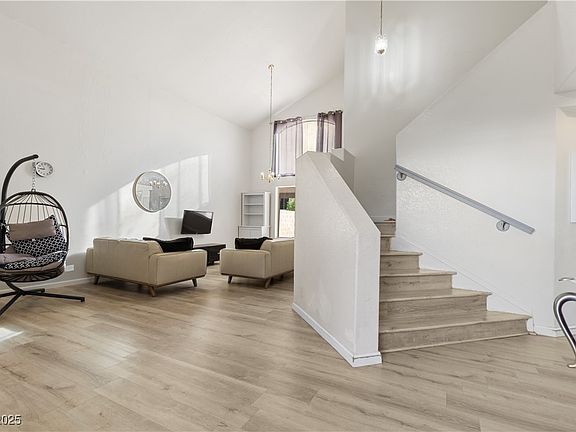 Nestled in a family friendly neighborhood near Silverado Ranch, this recently renovated 4 bed, 3 bath home offers a perfect blend of suburban tranquility and urban enjoyment. Even with the impressive amount of living space there is still plenty of room to play, entertain, and unwind outside in the generous 6,970 square foot lot. The first floor flows seamlessly from the formal living and dining area into a cozy family room. The kitchen boasts a quartz waterfall countertop, stainless steel appliances, and a walk-in pantry. The first floor bedroom with attached full bath also offers the choice of a home office or guest retreat. The primary suite is a true sanctuary with an en-suite bathroom featuring dual vanities, a soaking tub, and a separate shower. Location is everything, and this home delivers! Only 6 miles from The Strip, under 4 miles to McCarran Airport, and less than 2 miles from Sunset Park. Enjoy effortless access to I-15 and I-215 for daily activities and weekend getaways.