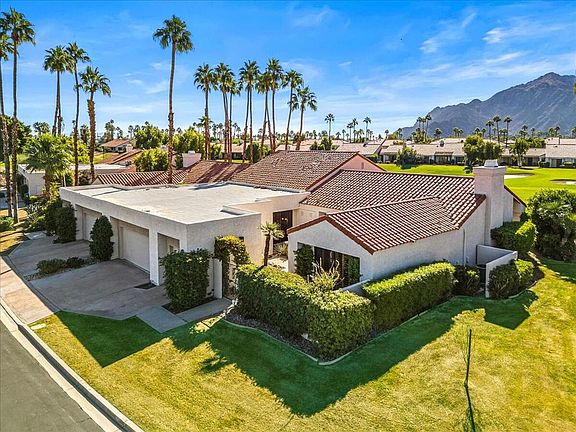 Magnificent! Southern view of the Santa Rosa Mountains, a great room design, and a totally upgraded chef's kitchen - this is everything you've been looking for! An expansive private courtyard with a sparkling fountain and desert planting expands your living space and welcomes guests into your stunning home! This ........ model has been artfully restyled to incorporate an open floor plan which features amazing views of the 11th fairway of the Dunes course and the mountains beyond. A stylish circular counter anchors the great room, affording easy entertaining and dining with a view. A built-in wine cooler is a welcome addition to any party! The kitchen has been enhanced with quartz countertops, stainless steel appliances, and custom cabinetry. The three large bedrooms offer the luxury of en suite baths, beautifully upgraded with quartz countertops and spa-like amenities. Each bedroom opens to a patio, to capture our glorious desert climate. The expansive patio sets the stage for al fresco dining, with a built-in BBQ, bar, large covered area and a firepit. Relax, recharge, take in the stunning view - come live the lifestyle you so richly deserve!