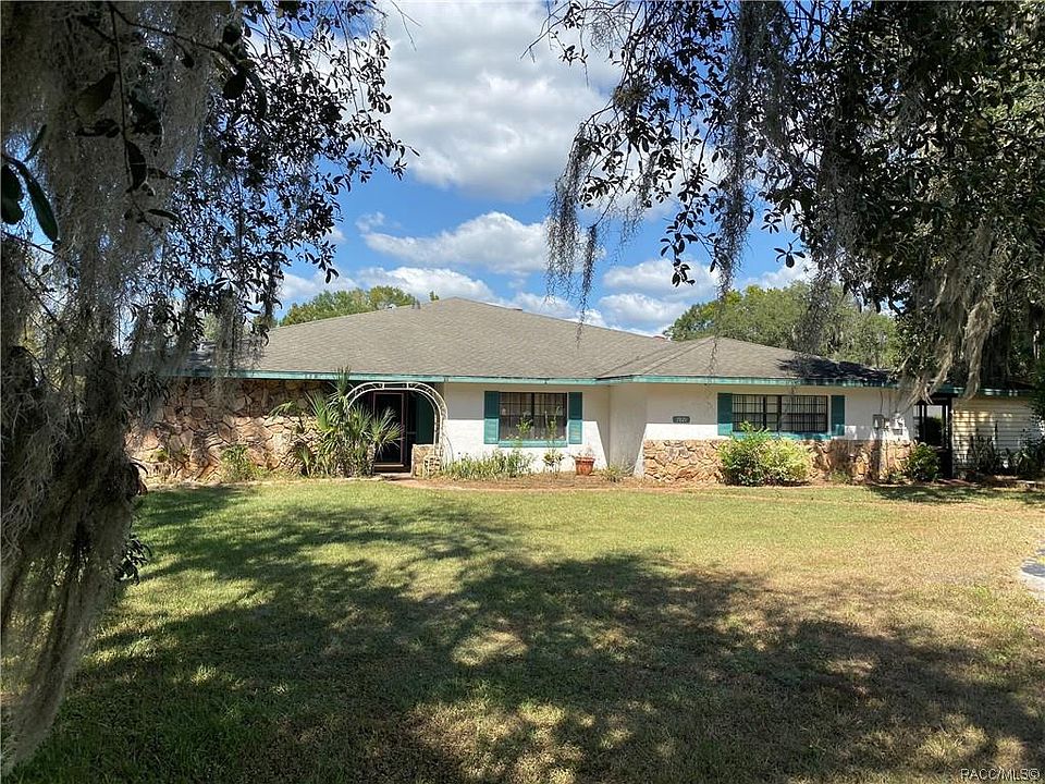 10 acre estate property appraised at $355k with a private 3/4 mile cleared walking/jogging/ATV trail between pond and lake, approx 7.5 of the 10 acres)must see to appreciate. A covered dock in the backyard on canal that leads to one of Inverness' beautiful lakes via pontoon boat/kayak/canoe/airboat, a pulley system for a boat, garages with air conditioning and electric,iron gates and a privacy wall, a concrete pad for an RV, a fenced tennis/basketball court, blooming fruit trees, an indoor pool area with a tiki bar, solar tubes in the living area, and a riding mower to take care of the acres. The land across the canal is owned by the Department of Environmental Protection. Home has been fully inspected:Septic inspections for both septic tanks, mold and radon tests, etc. Indoor pool has been inspected by 2 professionals and told there is one leak with quote. Roof has been inspected and has no leaks but is older.Home is AS IS and listing price is priced accordingly