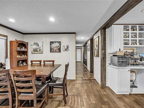 Welcome to this like-new 2022 double wide home offering modern comfort in an unbeatable natural setting with river frontage right in your own backyard! Thoughtfully maintained and move-in ready, this 4 bedroom beauty delivers the space, style and peaceful surroundings you've been looking for! Whether you love fishing, relaxing by the river, or simply soaking in the view, this backyard delivers a quiet escape right at home! This property is the perfect blend of comfort, value, and outdoor living, 2025 new roof w/architectural shingles