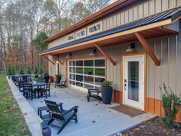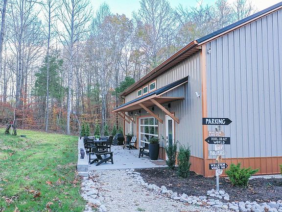 Do you need room for the whole family in a near-new home with custom charm? This property has it all! Nestled on just under 4 acres and approximately one mile from Painter Creek Boat Ramp, this unique retreat was thoughtfully designed by its owners to include custom, one-of-a-kind details that add personality and craftsmanship to every corner. Imagine enjoying your morning coffee on the custom-built penny side table or unwinding by the cozy fire pit on the spacious patio! The open floor plan offers an effortless flow between indoor and outdoor spaces, with a large garage-style door in the living room that opens to a patio for an incredible indoor/outdoor living experience. Hosting is easy with a fully equipped kitchen and spacious living areas, and all furnishings-even dishes-are included with the sale. Ideal as both a personal retreat or successful Airbnb, this home is ready for its next owners to enjoy! The property also features a 50-amp hookup on the property for EVs and an oversized 2 car detached garage, providing practical convenience and ample space for all your needs. This home is truly a MUST SEE-the photos don't do justice to the charm and quality you'll find here! With a short, 10 minuted drive to French Lick, where you will find something for everyone, with scenic train rides, a lively casino, boutique shopping, diverse dining, and a local winery. Also nearby are the Patoka Lake Winery, the new Patoka Lake Brewery, as well as scenic hiking trails-perfect for the outdoor enthusiast. Whether you're looking for a peaceful escape or adventure-filled days, this home is ideally situated for endless enjoyment.