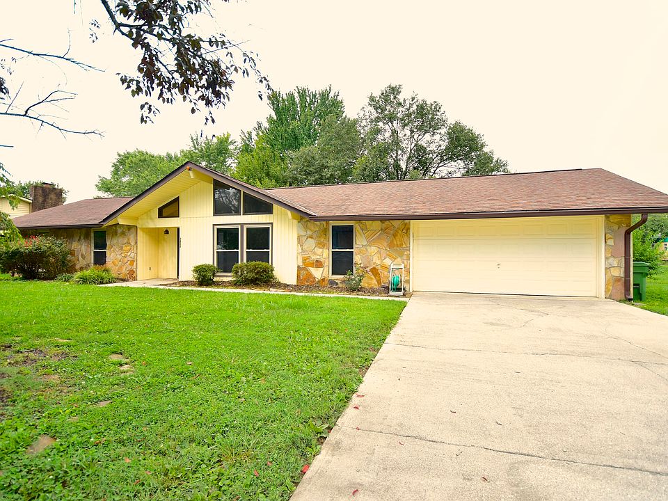 This is your chance to own a California ranch style home in the highly sought after Broadacres subdivision. Stone front with maintenance free siding. Living room boasts a vaulted ceiling. Family room has a brick wood burning fireplace. A complete inside renovation including new kitchen cabinets with granite tops, a new stainless steel appliances including the range, oven dishwasher and refrigerator. Both full bathrooms are also completely renovated with new cabinets and ceramic tile. All new flooring and paint, and a new water heater. This home is truly move in ready. Outside has a large level lot with lots of shade. Covered patio and a large storage shed in back for all your patio and lawn equipment.