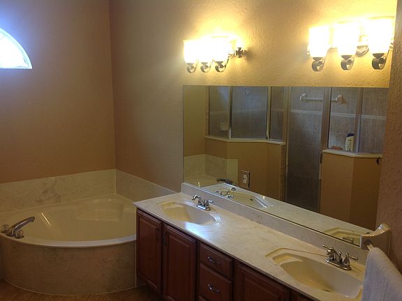 Beautiful custom home close to HWY 200. Once you walk through the double front doors you will be greeted with 13' high ceilings and custom crown molding. Wood floors and 8' high door ways make this home warm and open. The south facing front doors and windows bring a steady does of natural light throughout the day. A custom kitchen, center island with electric, granite counter tops,stainless steel appliances and walk in pantry with abundant storage lead to what is a popular layout which combines the adjacent living spaces into a single large gathering space with gas fireplace.A large master bedroom offers a nicely appointed bath garden tub, walk in shower, convenient double sinks and walk in closet. Plenty of space to entertain in the screened lanai with wet bar,that backs up to no neighbor