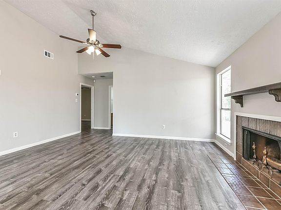 Adorable patio home! Recently updated throughout. Beautiful, vinyl plank flooring. Soft neutral grey paint. Living features soaring ceilings and wood burning fireplace. Kitchen with updated countertops and glass, flat top stove. Primary bedroom with BIG walk-in closet. Home is very private with fence surrounding 3/4's of it. Roof replaced 10/2025. Community features pool, tennis courts and walking trails. Easy access to Hwy 290, Bltwy 8 and Willowbrook area.