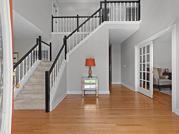 This elegant transitional home in coveted Spruce Ridge will have all of your boxes checked! Enter through the 2 story foyer filled with soft southern light to over 3,100 sq ft of open concept living with an extra 1500 sq ft lower level. A living room with a solid oak fireplace greets you through French doors and a spacious formal dining room awaits your dinner parties. The inviting family room features a 2nd fireplace and walks out to the deck revealing views of a heated saltwater pool and the private woods beyond. You will love the fully renovated kitchen, with its SS Kitchenaid appliances, granite counters and tall custom made walnut cabinetry, complete with slide out shelves. First floor laundry & powder rm. 3 bdrms share a full bath upstairs and the ensuite primary bdrm features an extra sitting area and large bathroom with spa tub. Not to be missed is the newly carpeted lower level, which presents plenty of space for relaxing and entertaining. Here you will find a 5th bdrm with its own exit to a stone patio, a full bath, 2 sets of doors leading outside and ample storage. Entire exterior just painted for you weeks ago. Located in the award winning FM district, this is the one!