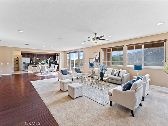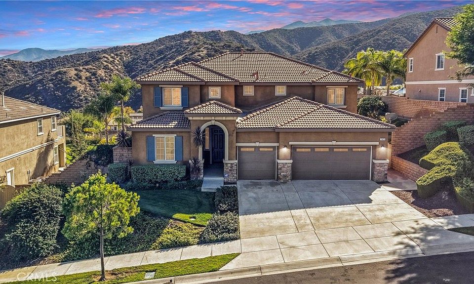 EXECUTIVE HOME | GATED GUARDED COMMUNITY | DOWNSTAIRS BEDROOM | PANORAMIC VIEWS | 3-CAR GARAGE | Welcome to this exquisite executive property nestled within the prestigious The Retreat Community — where daily life is defined by luxury, privacy & exquisite mountain panoramas. Step through the formal entry adorned with wood floors & custom tile inlay, setting the tone for refined living. A separate formal Dining Room provides an elegant space for hosting dinners, while the spacious Living Room invites relaxation by the gas fireplace. The Chef’s Kitchen is an entertainer’s dream, showcasing upgraded cabinetry, double convection ovens, a 5-burner gas cooktop, full granite backsplash, coffee bar, stainless-steel appliances, walk-in pantry, & an expansive island with views of the serene backyard. A downstairs Bedroom with a full bath featuring granite countertops and a tub-shower combination makes this executive home perfect for multi-generation living. Additional downstairs features include an expansive closet for storage, Powder Bathroom, and an over-sized Bonus Flex room – perfect for an office or separate Family Room. Upstairs, the Primary Ensuite Bedroom offers a luxurious retreat with a private balcony showcasing breathtaking city lights and panoramic mountain views. The Primary Ensuite Bathroom features an oversized shower with custom stone, deep soaking tub, dual sinks, granite countertops, and an expansive walk-in closet with a window for natural light. Bedroom #2 features an ensuite Bathroom with granite countertops and mountain views. Bedrooms #4 & #5 are well sized and perfect for hosting family and friends. The generous Loft serves perfectly as a Media Room or Library. The backyard is your private sanctuary—featuring a covered California room, mature landscaping, flowering plants, and ample room for a pool, all enclosed by block and wrought-iron fencing for ultimate privacy. Parking is effortless with a three-car garage featuring epoxy flooring and three additional driveway spaces—perfect for hosting family and friends during gatherings. ENERGY EFFICIENCY: Recessed lighting, custom shades and ceiling fans add efficiency to unmatched elegance. AMENITIES: Community pool, playground, basketball court, & fireplace. LOCATION: Just minutes to Trader Joes, cinemas, shopping, restaurants, music venues and more! Quick access to 15/91 Expressway, 71 Fwy, & 241 Toll Road. Experience elevated living at The Retreat—where elegance meets comfort in every detail.